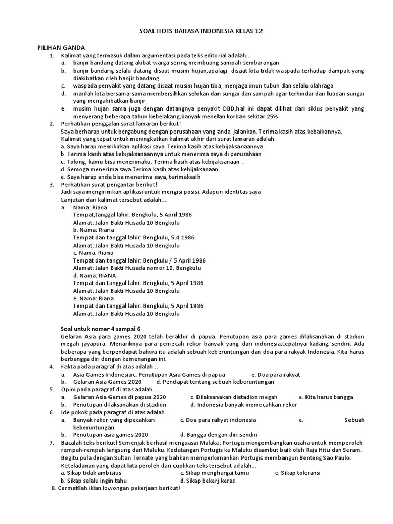 Contoh soal hots bahasa indonesia kelas 6 kd 3.1