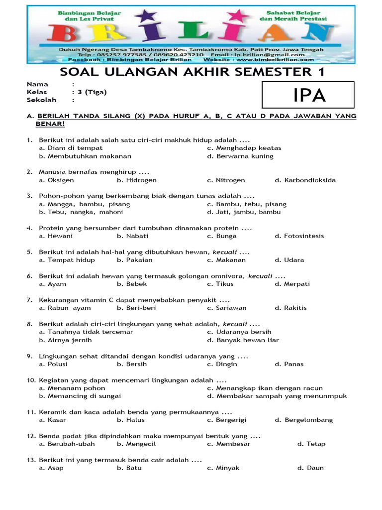 Memasuki jenjang Sekolah Dasar (SD) kelas 3 merupakan fase penting dalam perkembangan akademik anak. Pada tahap ini, pembelajaran semakin terstruktur dan menuntut pemahaman yang lebih mendalam melalui pendekatan tematik. Pendekatan tematik, yang mengintegrasikan berbagai mata pelajaran ke dalam satu tema sentral, membantu siswa melihat keterkaitan antar konsep dan membangun pemahaman yang holistik. Untuk mengukur sejauh mana pemahaman siswa terhadap materi yang telah dipelajari selama semester 1, naskah soal latihan yang berkualitas menjadi instrumen yang tak ternilai.