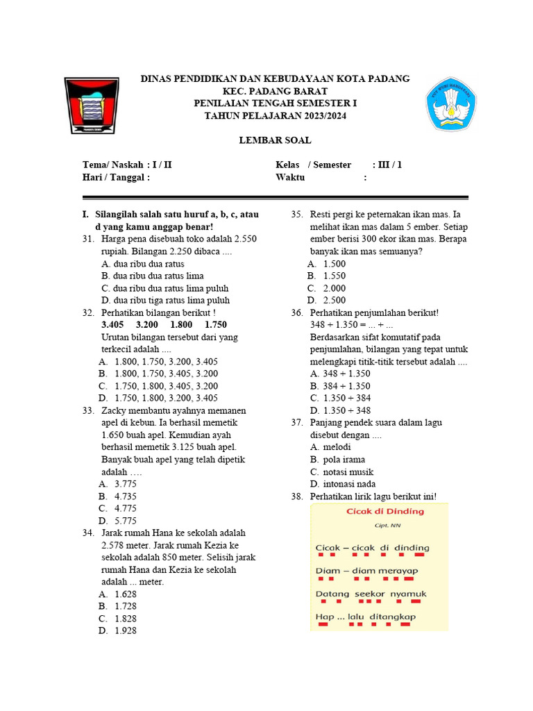 Penilaian Tengah Semester (PTS) merupakan salah satu instrumen penting dalam siklus pembelajaran di sekolah. Bagi siswa kelas 3 Sekolah Dasar, PTS Tema 1 menjadi momen krusial untuk mengukur sejauh mana mereka telah menyerap dan memahami materi yang diajarkan selama paruh pertama semester. Naskah soal PTS Kelas 3 Tema 1 Naskah 2, khususnya, menjadi fokus perhatian bagi para pendidik dan pembuat soal dalam merancang evaluasi yang komprehensif, adil, dan relevan. Artikel ini akan mengupas tuntas seluk-beluk naskah soal PTS Kelas 3 Tema 1 Naskah 2, mulai dari tujuan, karakteristik, hingga implikasinya terhadap proses pembelajaran.