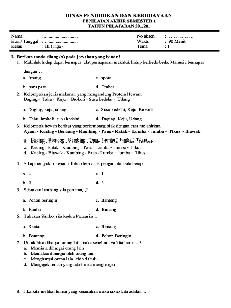 Soal pas tema 1 kelas 3 semester 1 pdf